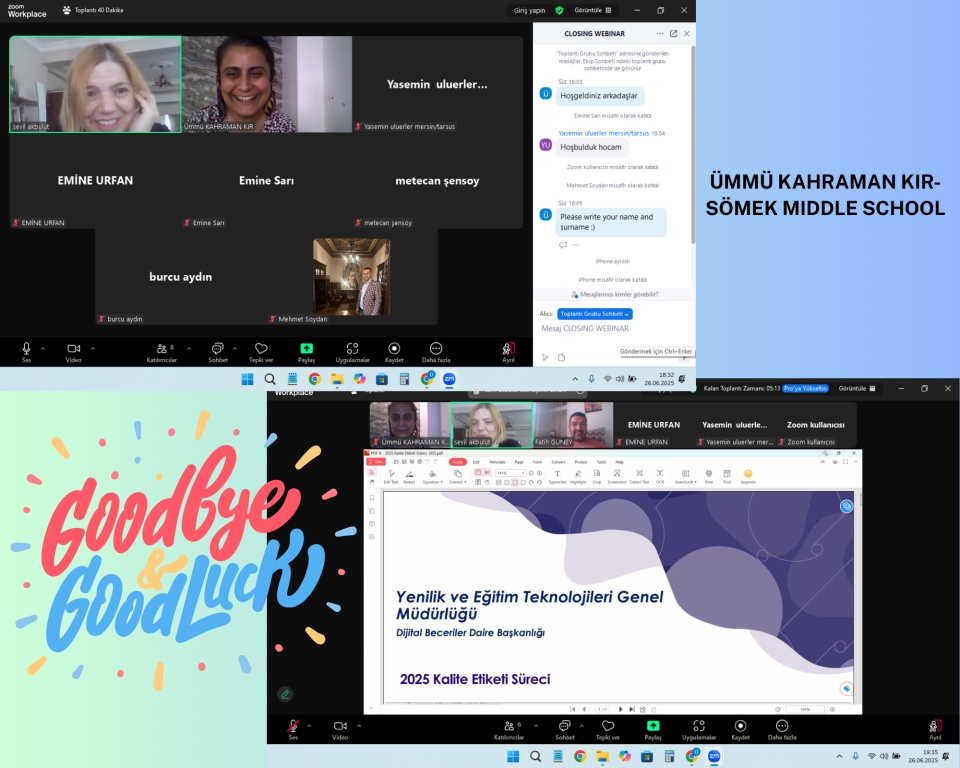 Okulumuzun da ortağı olduğu SOMEK – Student-led Oceanic Movement for Eco-friendly Knowledge adlı eTwinning projesinin kapanış webinarı, 26 Haziran 2025 tarihinde iki oturum şeklinde çevrim içi olarak gerçekleştirildi.